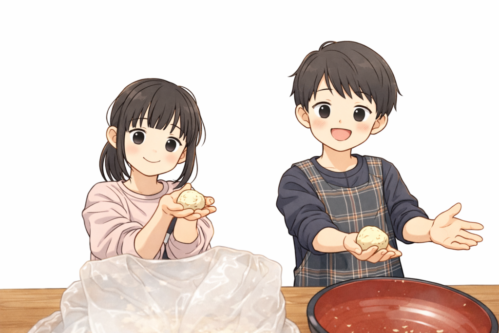子どもたちの役割は「味噌玉職人」。